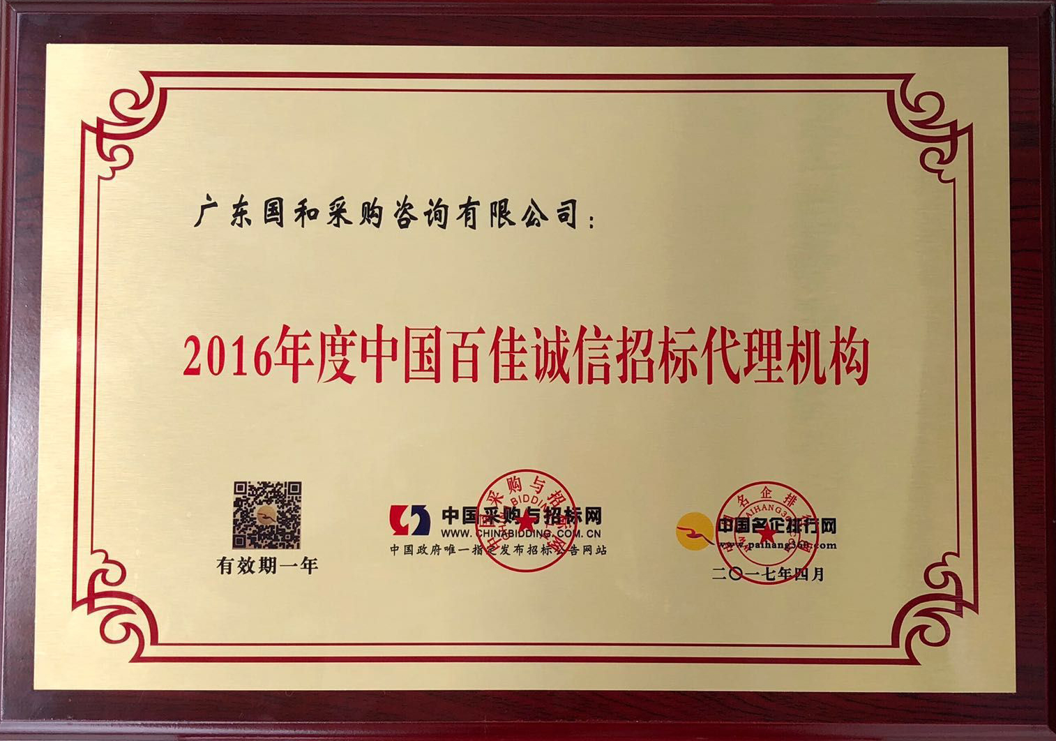2016年度中國(guó)百佳誠(chéng)信招標(biāo)代理機(jī)構(gòu)